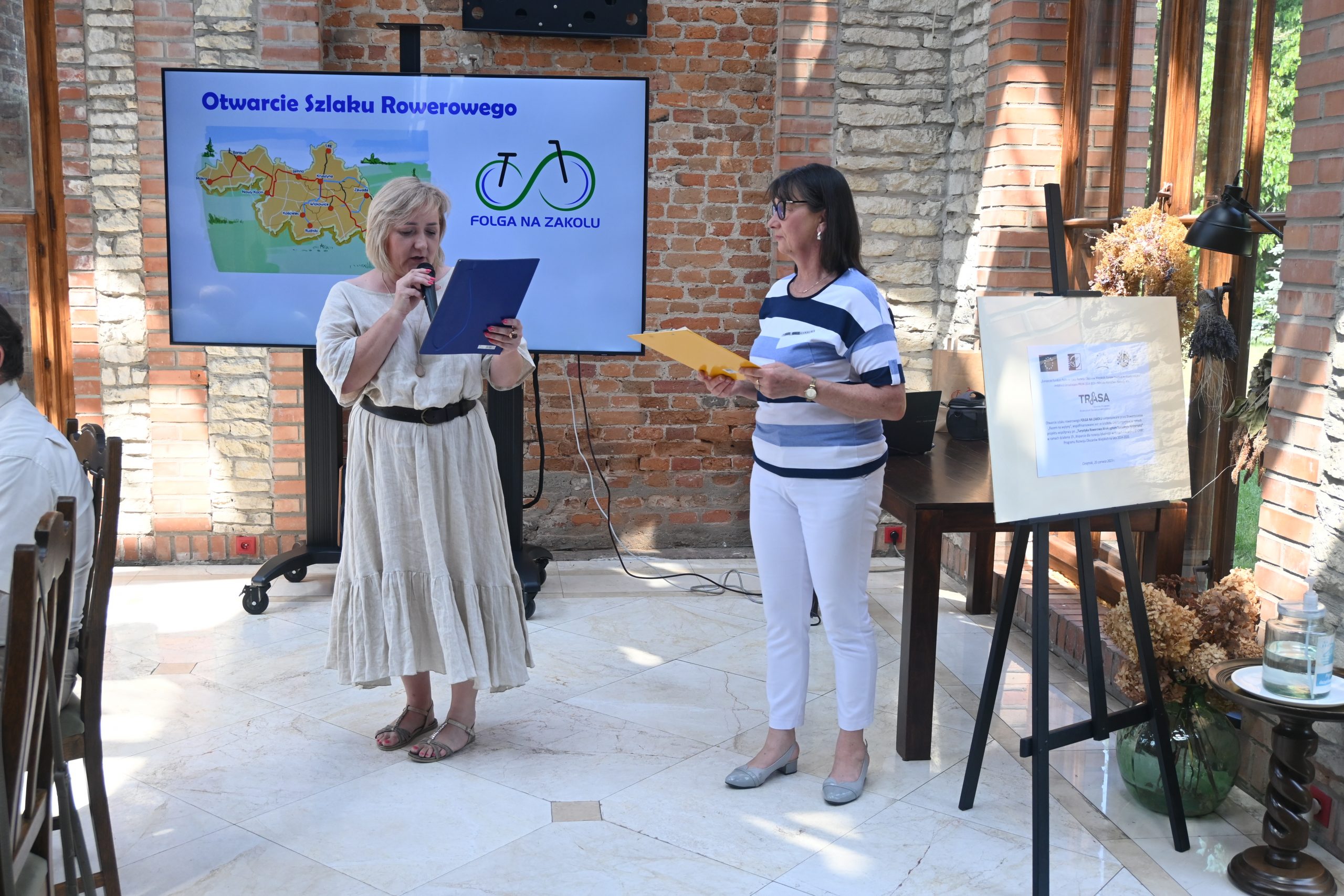 Następnie przedstawiona została prezentacja na temat projektu TRASA oraz szlaku rowerowego Folga na zakolu. Głos zabrali także partnerzy projektu TRASA, którzy opowiedzieli o szlakach rowerowych które powstają na terenie ich działania.